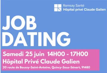 L'Hôpital privé Claude Galien organise un Job Dating le samedi 3 juin 2023 de 14h à 17h.